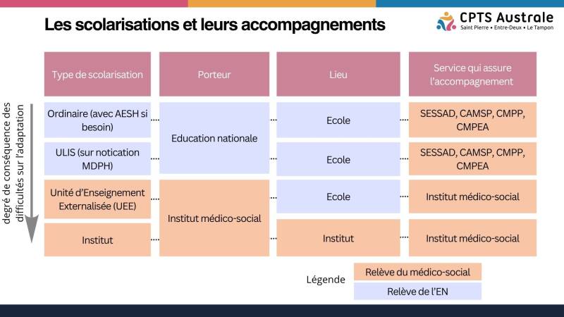 2) Logique des structures assurant un suivi, les instituts et services (SESSAD), et repères sur la scolarisation